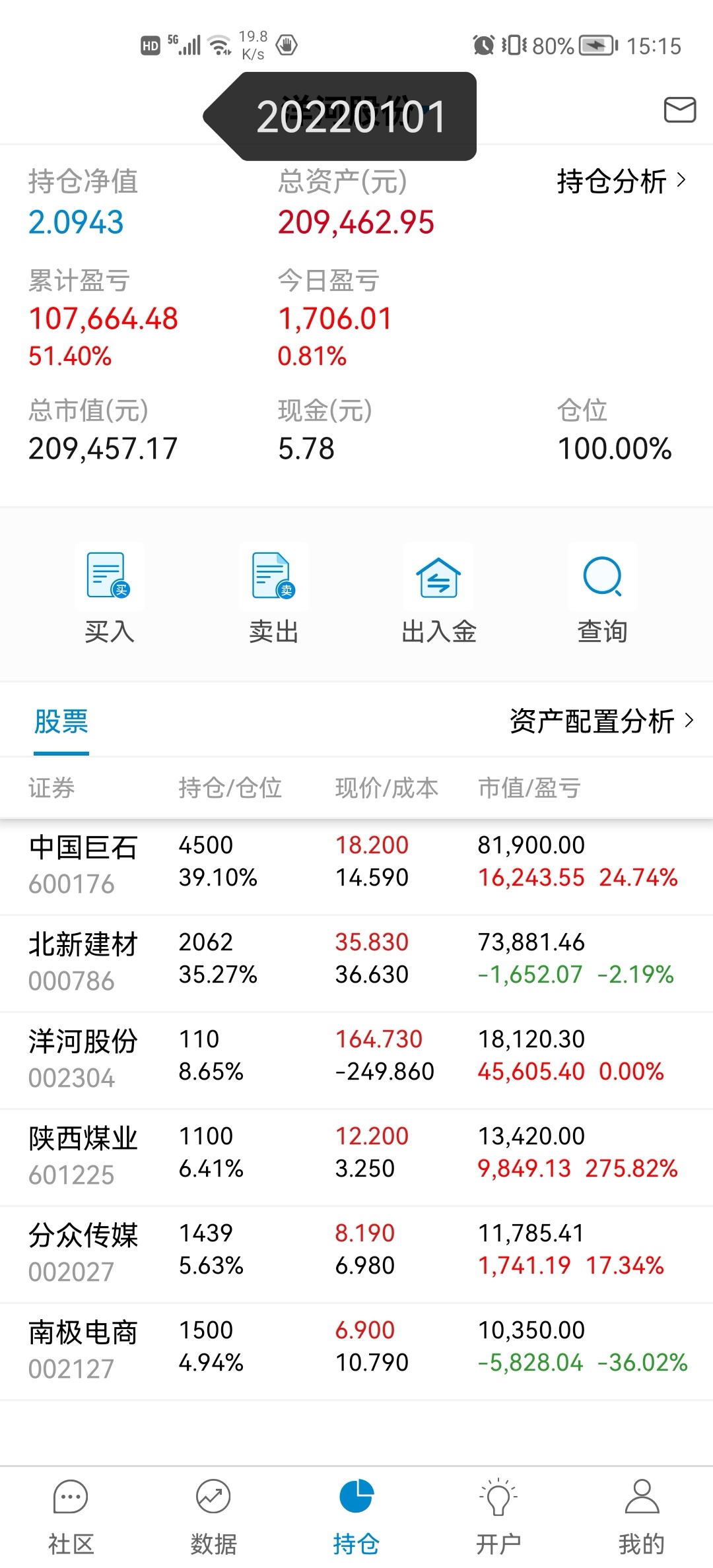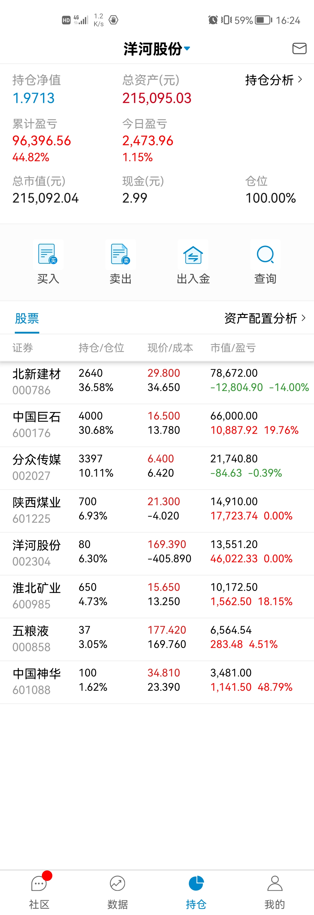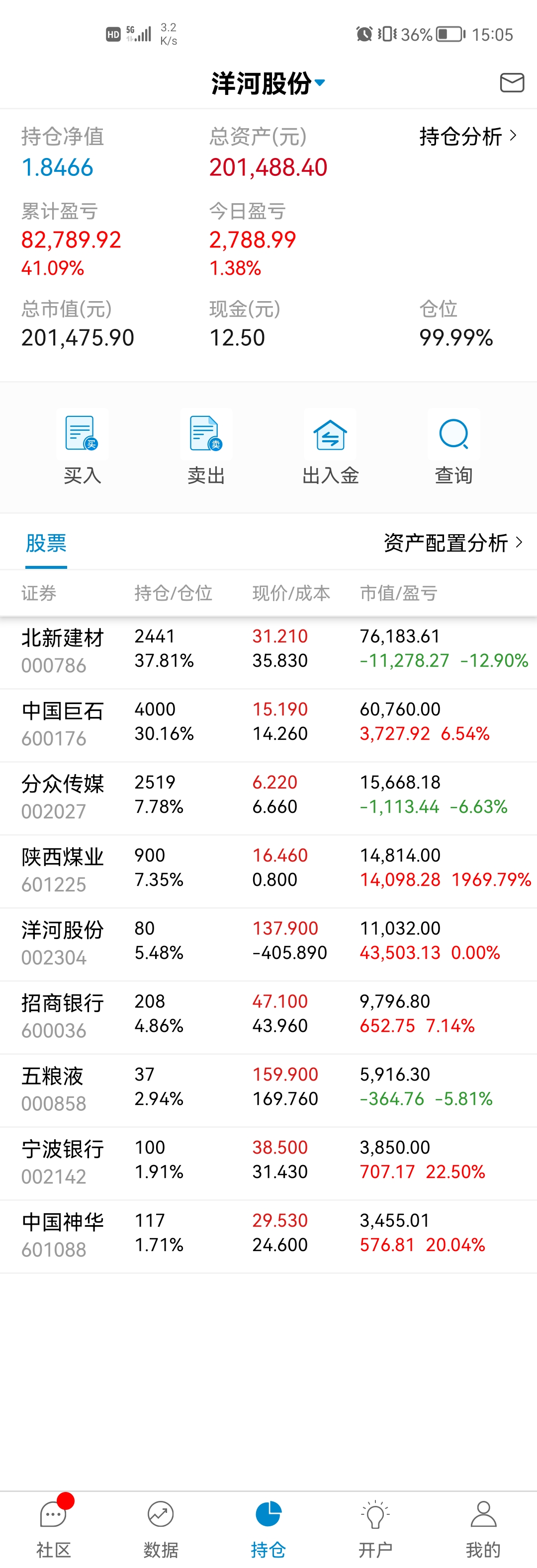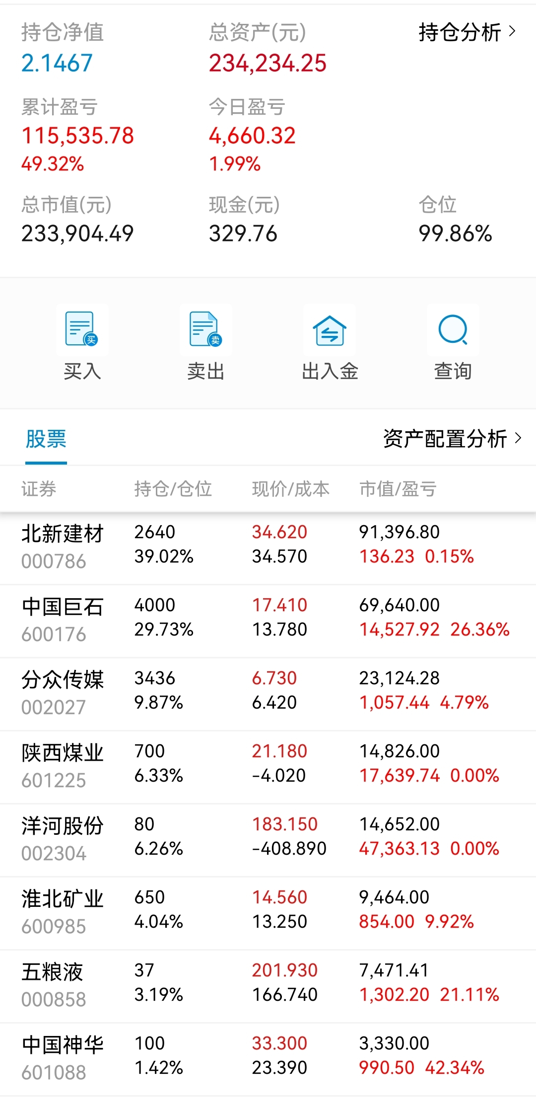 这三年也就买过不超过15支股票吧,亏的应该就2支,大冤种北新建材还在坑里,还有个很小仓位电商的忘记了。也有不少翻倍的分众、洋河、淮北矿业、陕煤,不到一倍的银行招商、宁波,平安、巨石、五粮液等。唯一现在持仓还亏的就是北新建材了,北新主要亏损的问题是做了个大的过山车,加上买的不便宜,不过是不是个错误我还想在看一看,年报还没看到雷,但没有自己预期的好。