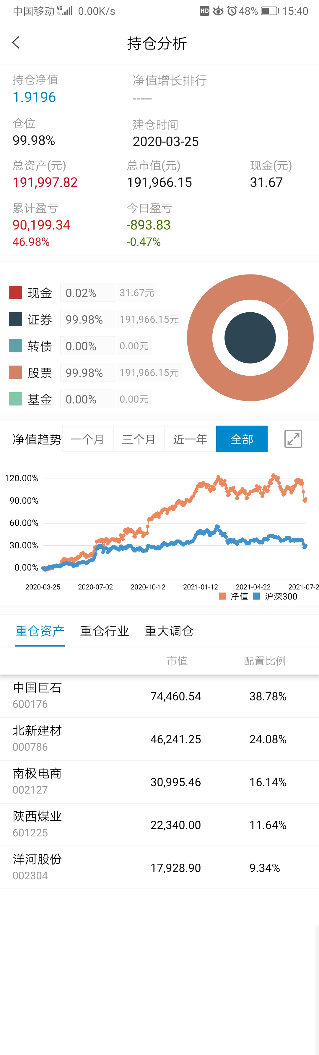 今天陕煤涨停,昨天卖飞了一点,说几句轻飘飘的不看半年报(捂脸……),想到半年报会很好,没想到出来后今天会涨停,我还是太年轻了,还好只卖了2%。今年股票还有盈利全靠陕煤和巨石,其他盈利靠打新加转债。