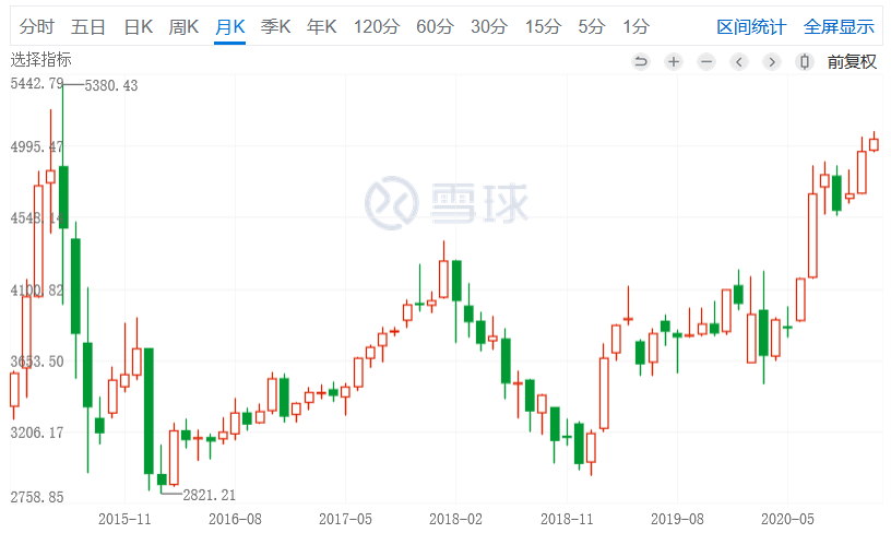 我不怎么看上证指数,主要关注沪深300。沪深300在春节疫情期间跌破3000,而现在已经5000多了。