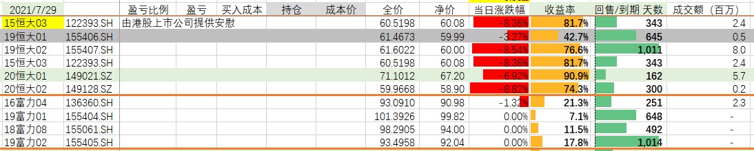 总体来说,我不看好恒大债,所以,我知道有大神90+就买恒大债,但是,我不为所动,80+也不动心,70+我的心乱了。