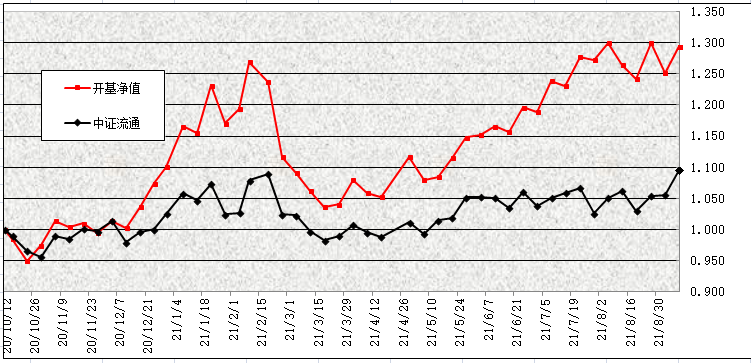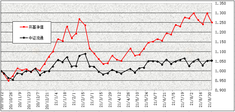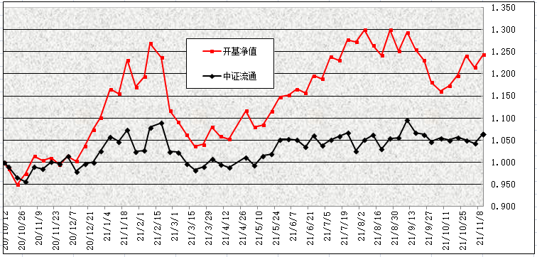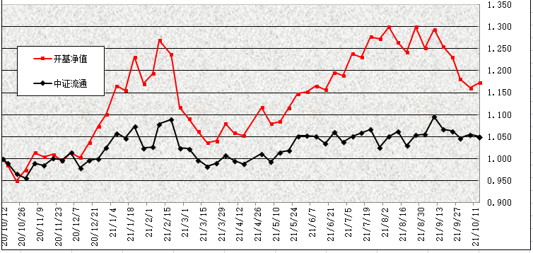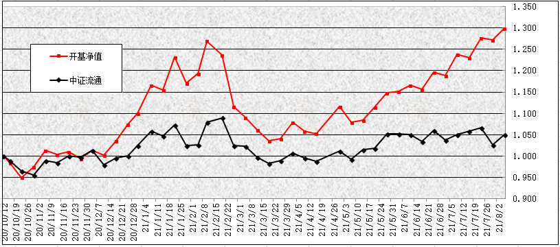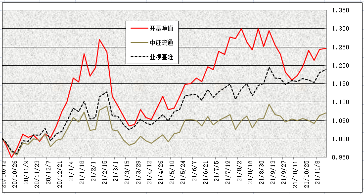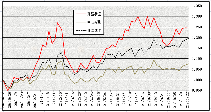 4. 业绩基准:中证流通指数年净值*1.1(净值比)。