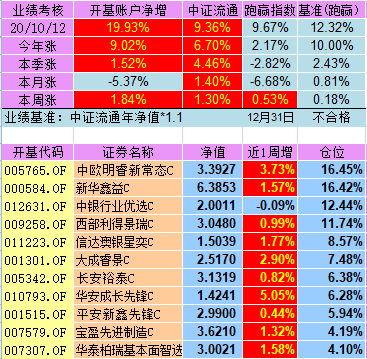 2021年已收官,开基作为实验账户跑输业绩基准,仓位占总账户的16.8%,属于拖后腿分子。