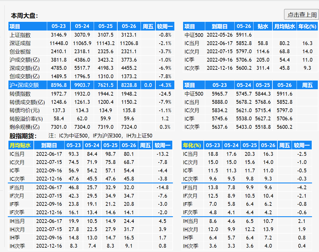5.27 大盘先扬后抑,两市成交额8157亿,转债成交额1000亿,中证500贴水较高