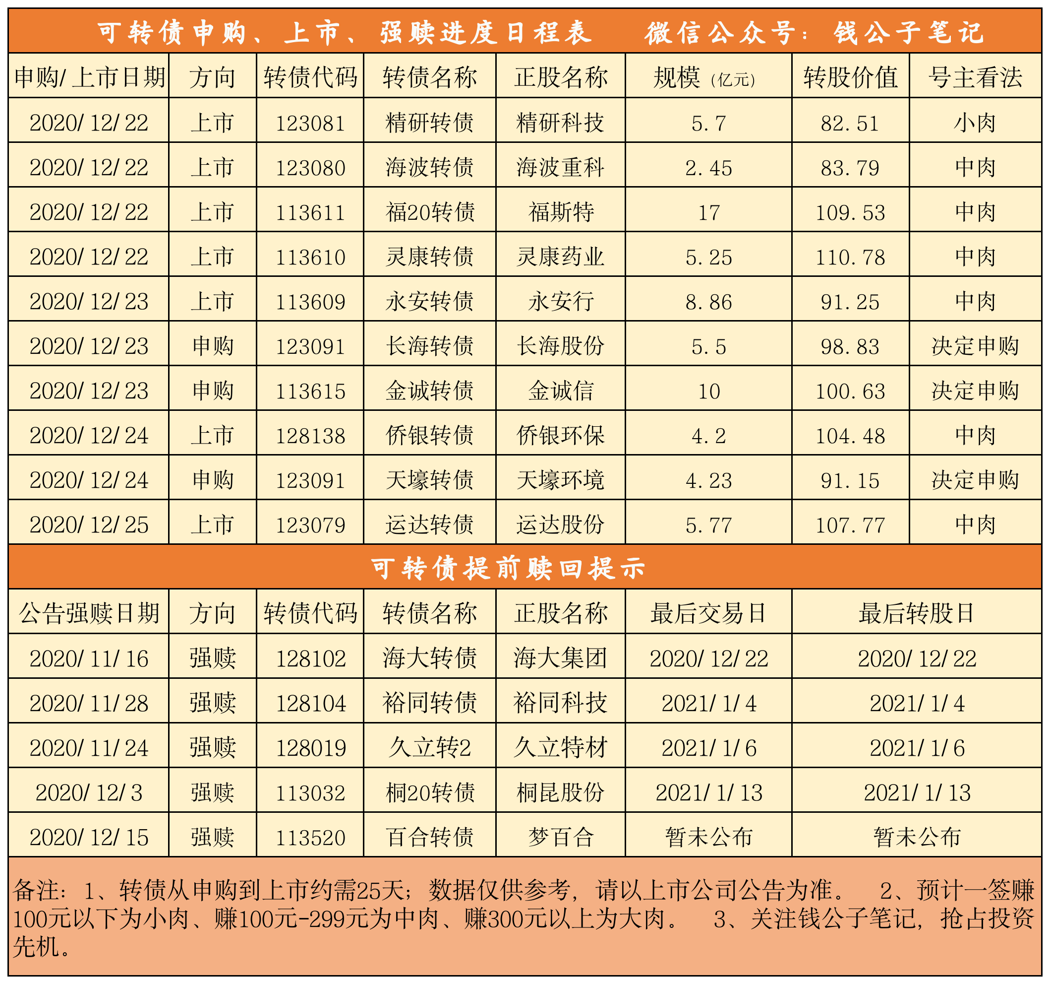5、新泉股份公告,新泉转债本次不提前赎回,且2020年12月22日至2021年3月21日,均不提前赎回。