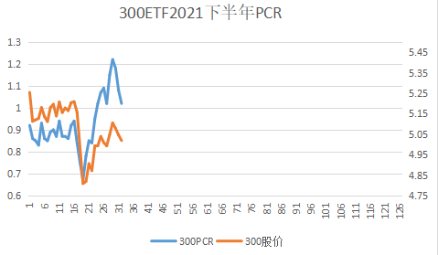 点评:昨天传说看得见的手再度入场了。8月这两个指数都是有波幅无涨幅,规模变动不大。50的PCR已经持续很长时间保持低值,事实也证明做空该指数不太有效。比如平安跌但石油涨。所以期权玩家很少出手的。