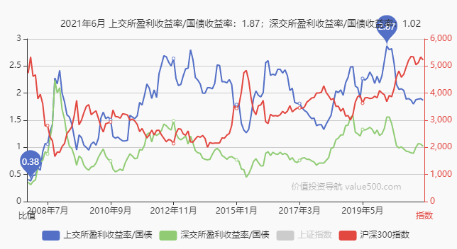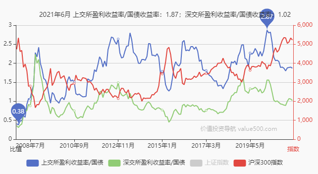 在国债不变的情况下,股指数越低,股债比越高——盈利收益是滞后的!!!!!也就是我们现在看到的盈利收益并不是即时的。