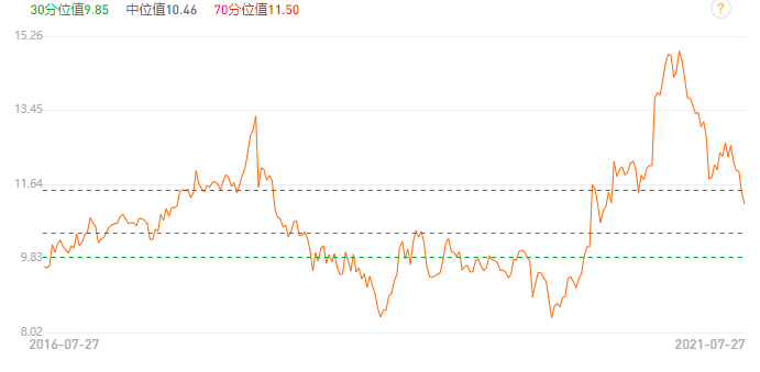 这是更新到昨天的300PE曲线,经过整整一年的“高估”,终于回落到70%百分位下了。