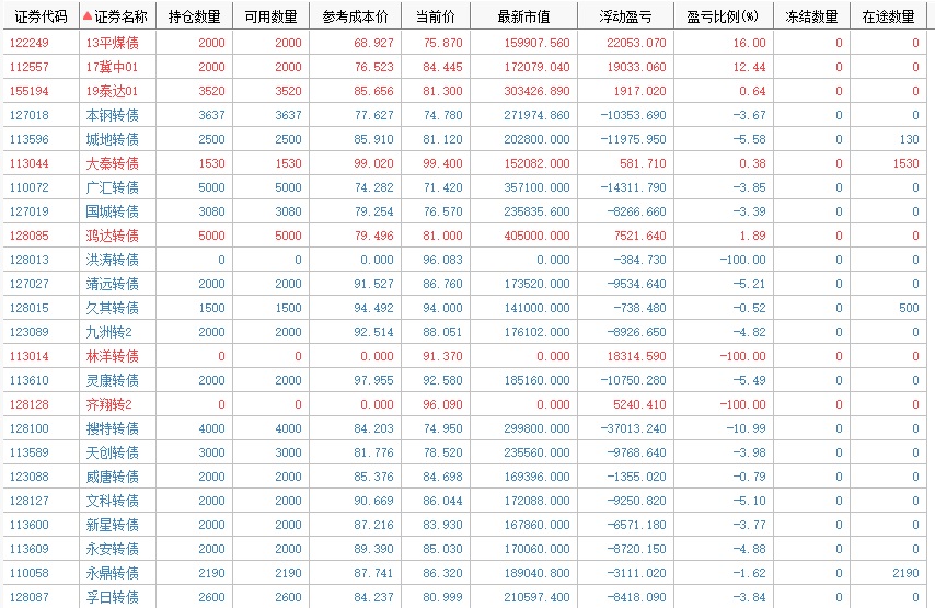 1、卖出17冀中01(没流动性真可怕!),买入20冀峰01。前者是上市公司冀中能源的债券,表现很稳定,后者是冀中能源峰峰集团的债券,它们的大股东都是冀中能源集团,业务都是煤炭开采。