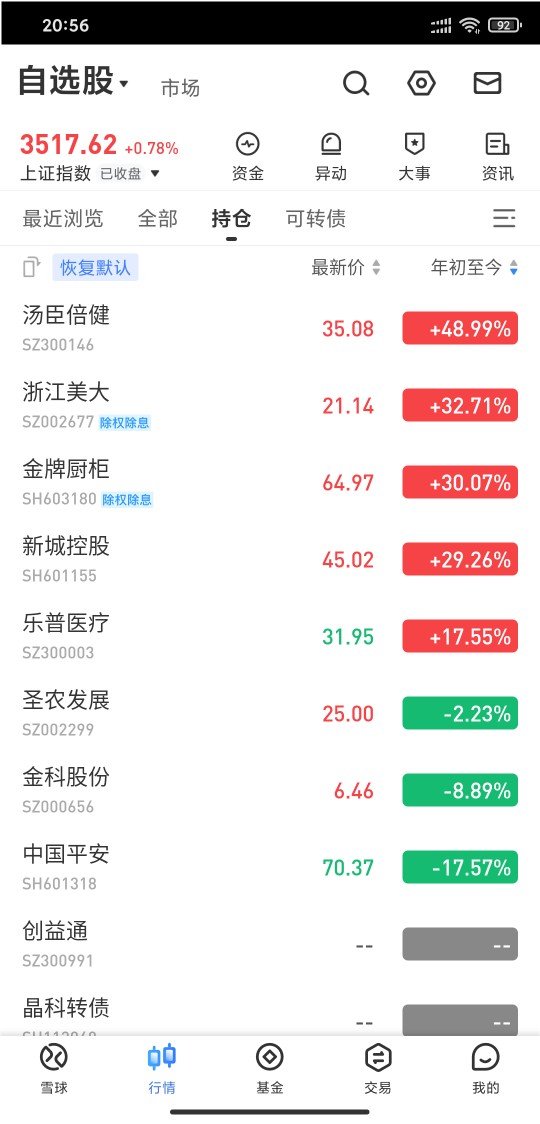 回首半年,年初持有7只个股变成6只,仓位一直在集中,一直持有的只有汤臣倍健+乐普医疗;赔本清仓的有金科股份、圣农发展、中国平安;赚了点小钱清仓的有浙江美大、新城控股。。。