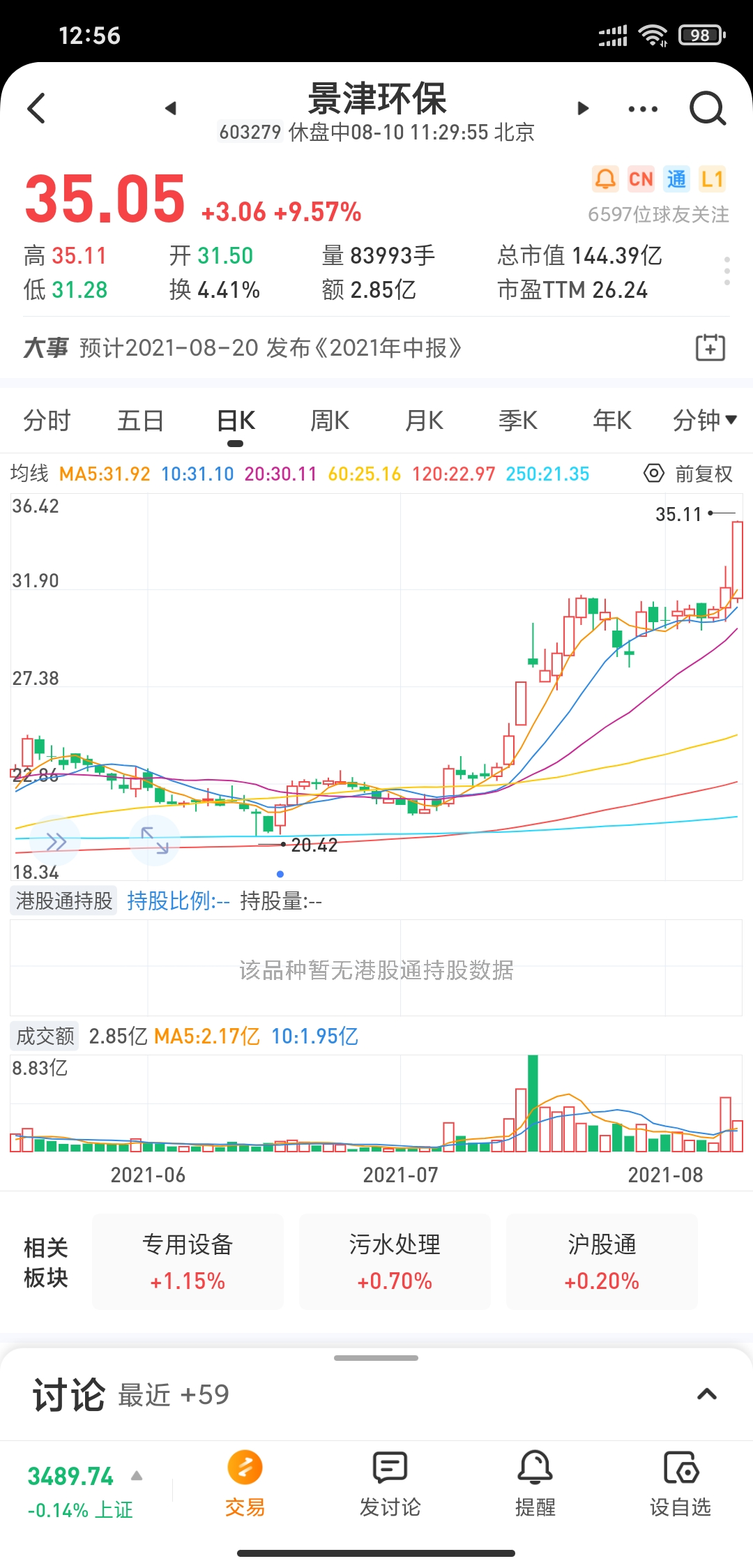 2021年半年度小结,本周市值继续大幅缩水,扣新浮盈只剩下16.86%,主要原因是第一重仓汤臣倍健的大幅下跌,市场可能预期中报不够理想,本周无操作,前几周清仓中国平安、金科股份、新城控股等高杠杆的金融地产后,虽然换入的制造业细分龙头华荣股份、景津环保等不尽如人意,但远离高杠杆相对放心,现在能做的就是持股不动,静待中报揭晓。上半年才中了6只新股,收益8.69万元比起去年想差不少,希望下半年能中几个大肉签弥补下。