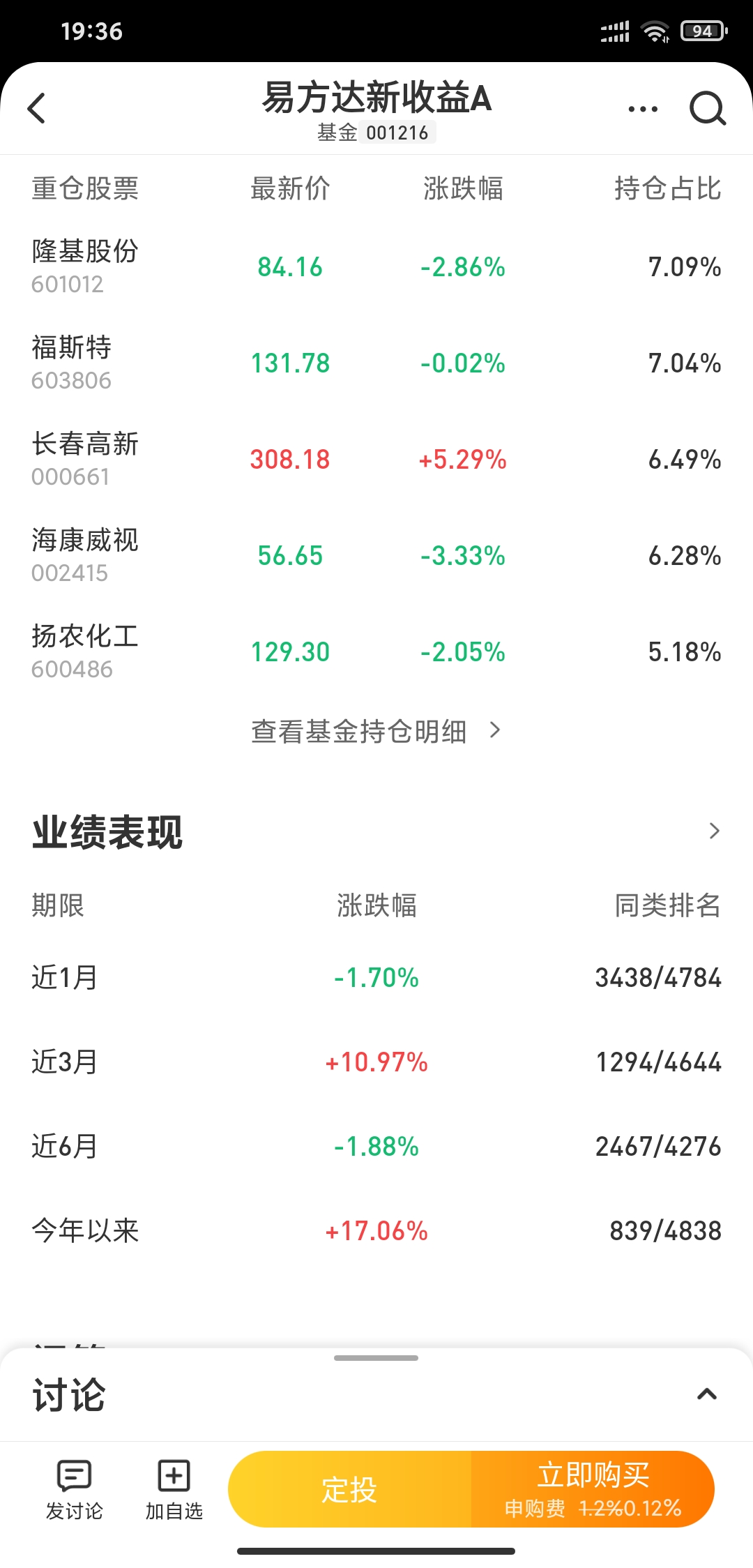 本周重仓股汤臣倍健、乐普医疗、元隆雅图、今世缘等都暴跌,除了系统性风险,更是主流资金清仓消费、医疗等造成的,今天收盘扣新浮盈只有9.56%了,又一次辛辛苦苦干一年,一夜回到解放前,但是仍然坚守等中报,如业绩无虞继承持有。