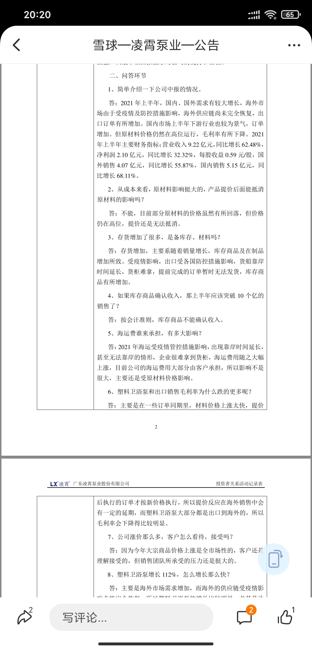 华荣股份(SH603855) 早上又花了点时间看了近两年的财报,华荣最大的问题就是应收款占比过高,还有销售费用率较高,不过这也和他的业务模式紧密相关,超过一年的应收款占比很低了,公司的净现比还是非常优秀的,销售费率也逐年降低,随着防爆及照明应用范围的扩大,还有国际化程度提高,未来大有可期。