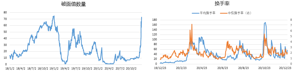 破面值数量及换手率: