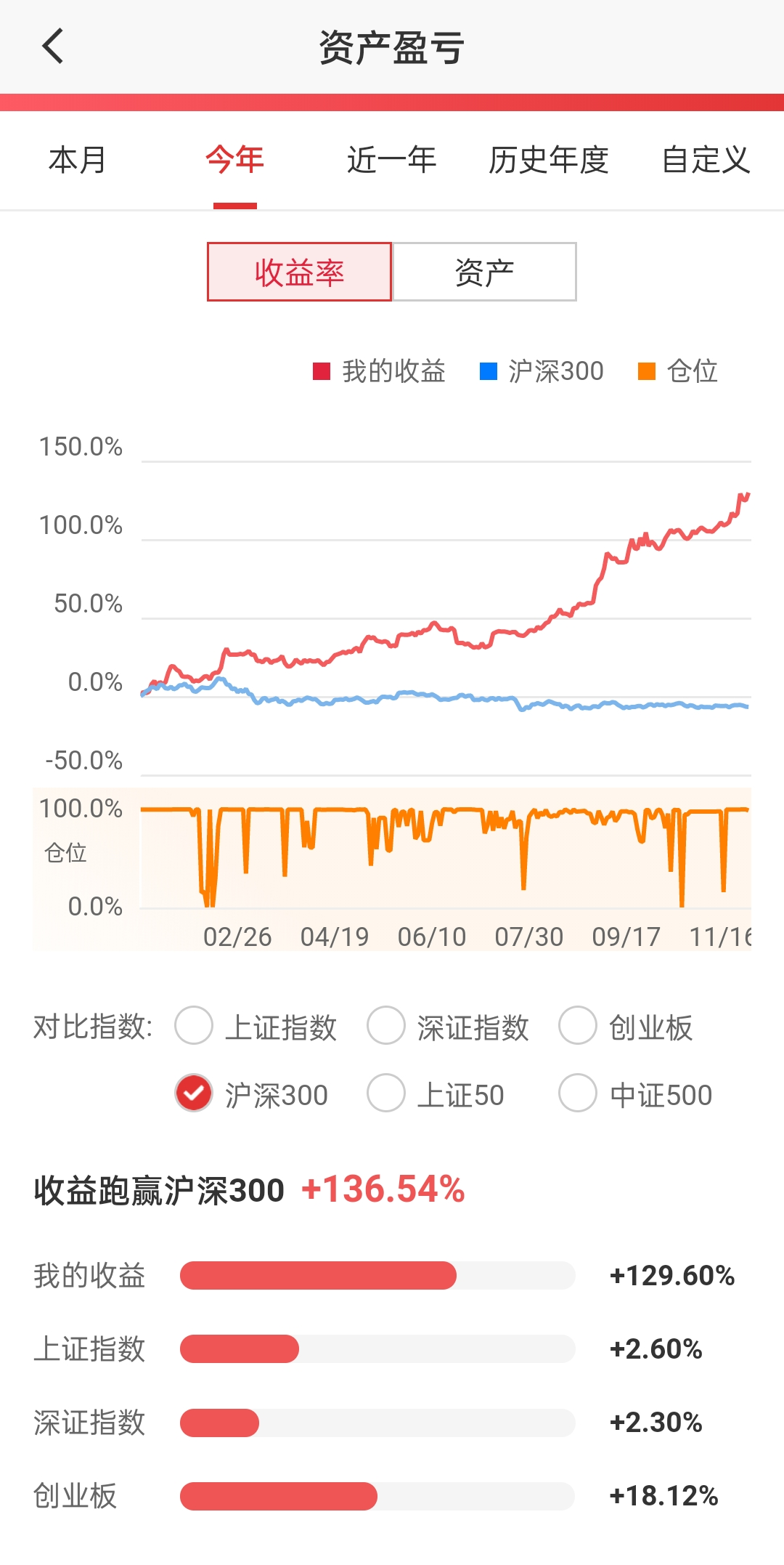 一、今天收益2.22%,本周收益4%,本月亏损0.1%,年度收益79.33%(目前年度最高点81.63%(10月7日)