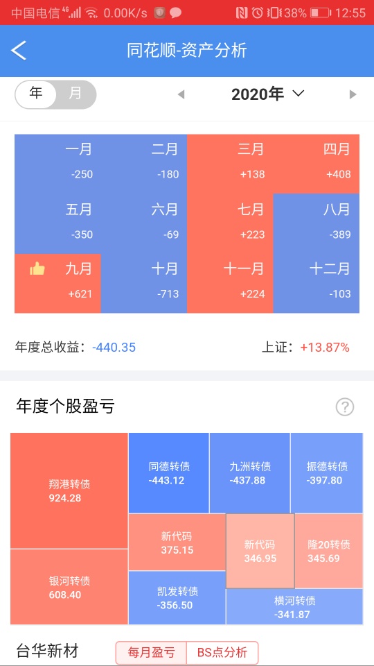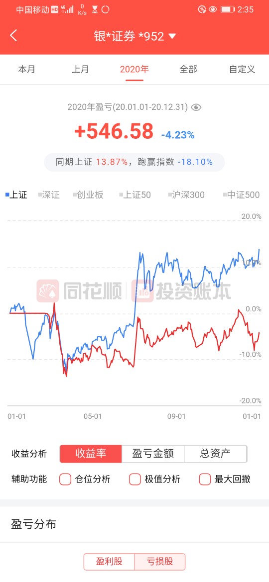 中签新股国联证券加上转债收益,2020全年亏损900多块钱
