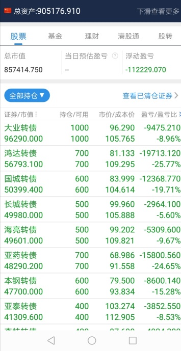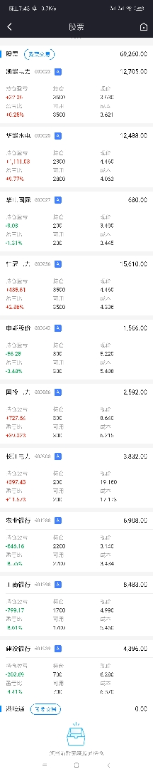 账户主要是银行和电力。亏损较多的有浦发,中国中车,唐山港。中石化。