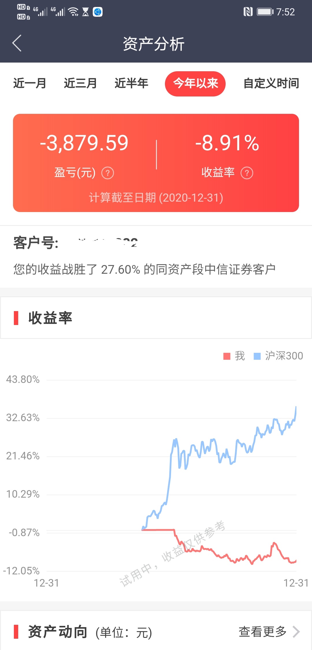 一个是打新账户,年初配置了13万打上海新股。结果一年到头一个新股都没中。其实这个账户已经2年半都没中了。今年的期权表现不错,所以年尾这个账户已经只有8万本金了。目前总资产只有7万多。