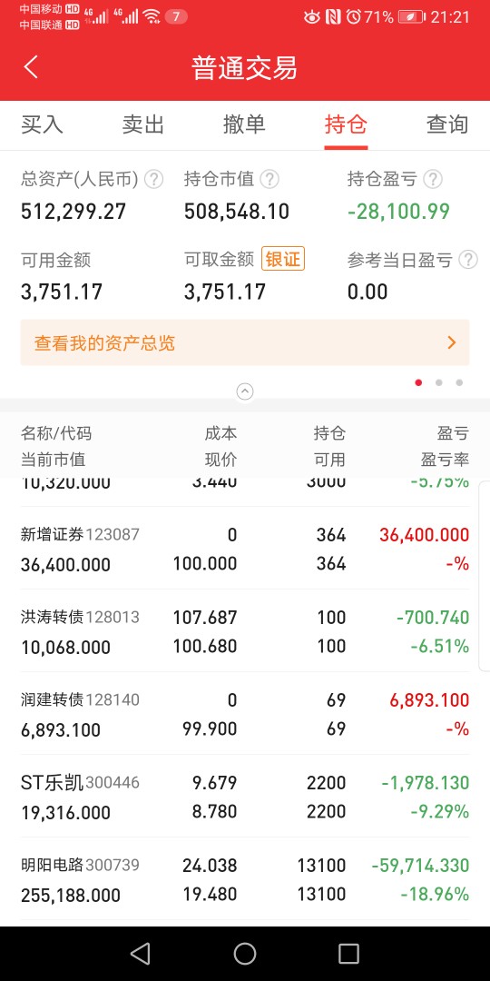 因为前几年亏钱,自己慢慢减少了总仓位上限,现在加起来也就投入了名义的一万在股市,群友50左右喊着买ST舍得,碰上仓位里转债没上市我也没钱[汗]。
