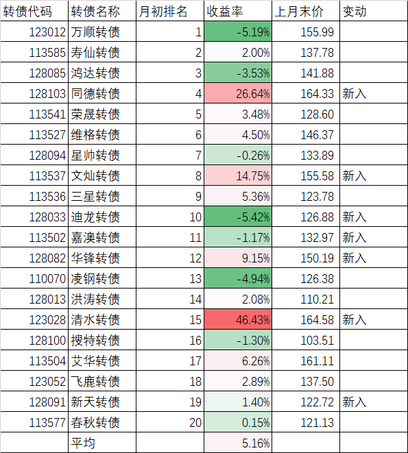 因为有了这个深刻教训,所以当时在轮动的时候看到价格高的有恐惧心理,把原来阈值170元的调低到150元,偏偏9月底收盘的时候,这3只会给10月份带来巨额收益的可转债,清水是164.58元、同德是164.33元、文灿是155.58元。