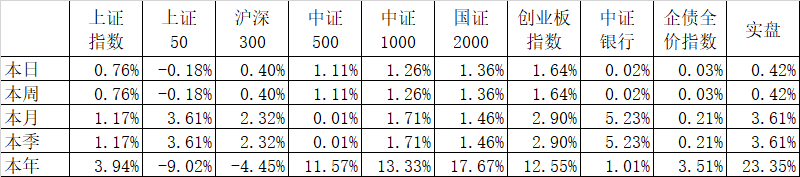 今天家用电器、家居用品、半导体、食品饮料、酿酒、房地产等领涨,煤炭大跌,下跌的还有钢铁、有色、石油、电力等一干周期股。宽基指数上上证50领涨1.21%、国证2000领跌1.16%。但本周还是国证2000最强。个股还是弱。66%的个股下跌。北上资金净买入144.39亿创最近天量。