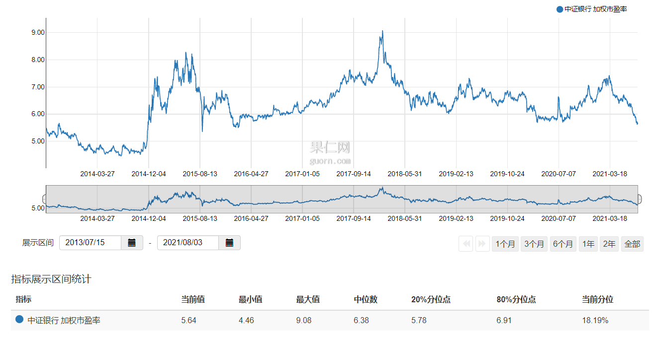 银行下跌到底什么时候是个头呢?我们看看中证银行的历史数据,在2014年年底,中证银行指数上涨了32.21%,这个月涨幅是从2004年年底有中证银行指数历史上16年多来涨幅最大的一次,恰恰是在上涨前,中证银行的PE创下了4.46的历史最低。