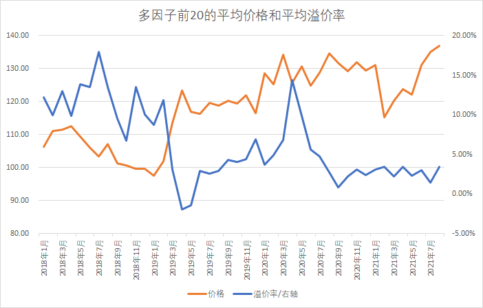 从图上可以看到,最近双低的价格和溢价率,在最近3年多来,其实并不高,但如果看今年,确实是到了一个高点了。我们再来看看我目前用的多因子策略的平均价格和溢价率的变化: