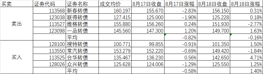 事后我找了几个可转债和正股的关系,才发现可转债先于正股发动行情不是孤案。不过最近也有做对的。周二白酒受申遗消息影响大涨,我卖出了最后一点茅台换入了可转债,结果2天茅台下跌了6.06%,可转债组合上涨了4.67%,一进一出2天就相差了一个板。