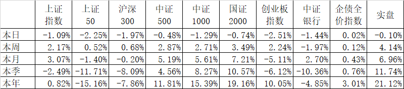 国证2000是另外一个国证系列的指数,国证1000是自由流通市值最大的1000只股票的组合,而国证2000是自由流通市值排名从1001到3000的股票的组合,显然现在国证2000更能代表A股整个市场小市值的股票了。