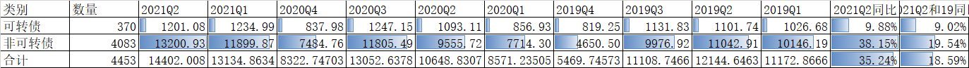 再看一下370只可转债的正股和其他没有可转债的对比,从Q2的归母净利润的1年同比、2年来看,可转债的正股并没有优势,其中的原因我想可以解释为很多不缺钱的公司盈利情况很好现金流充沛并不需要发行可转债,比如茅台。