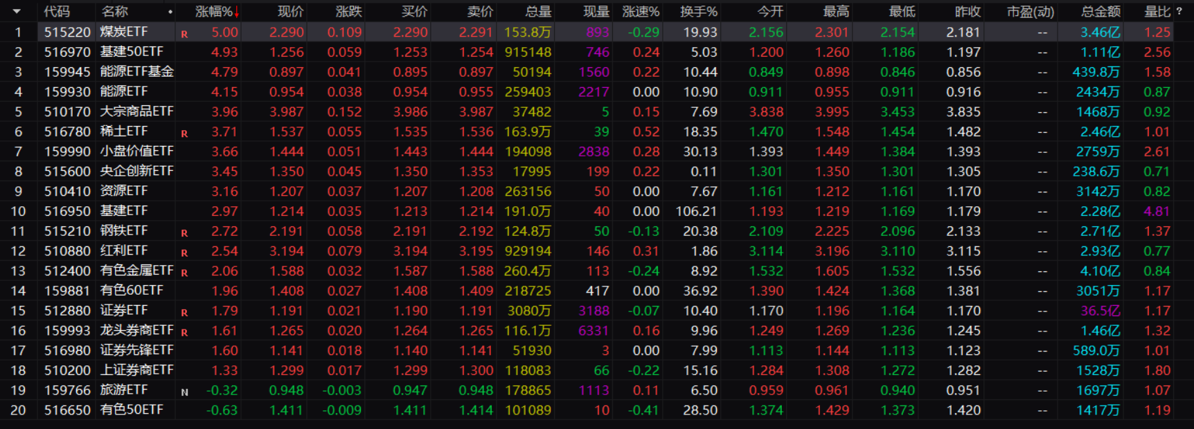 跨越熊市能取得年化25%以上的收益率,而且在今年能取得22%以上的收益率,20个交易日轮动一次也不算特别高频,我昨天按照这个策略用小资金平均买入了20只ETF,今天18只上涨2只下跌,平均涨了2.59%。