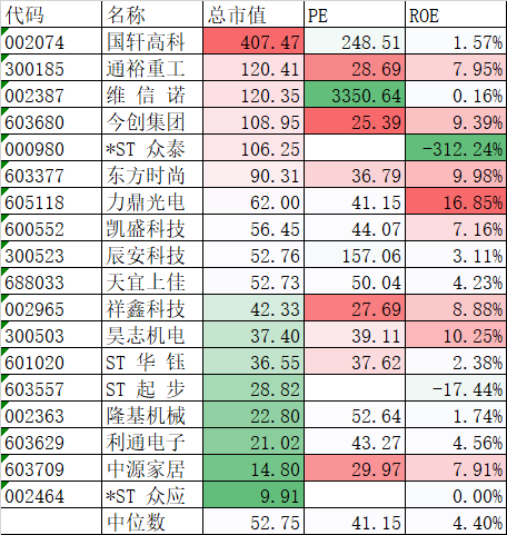 叶飞公布了18只股票,我们统计了这18只股票的最新市值、PE、ROE等数据,发现还都是几个特点:小市值:最高的国轩高科是407亿,最低的*ST众应不到10亿,中位数53亿;高PE:最低是今创集团的25,最高是维信诺的3351,还有3只ST是亏损的;低ROE:中位数才4.40%。也就是说这些股票普遍都只是质量不太好概念股,目前A股500亿市值有284只,绝大部分优质资产都在其中了。200亿以上有752只,已经排除了绝大部分叶飞概念股。