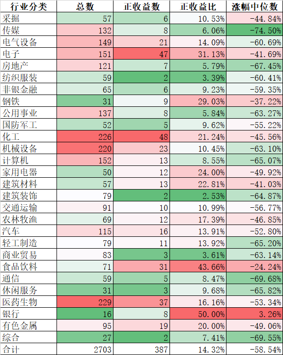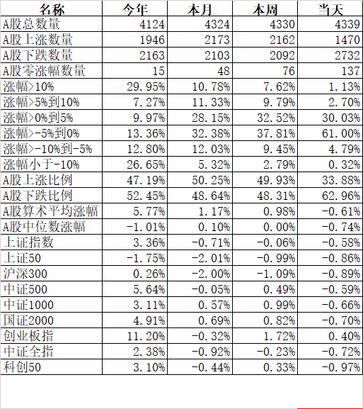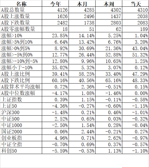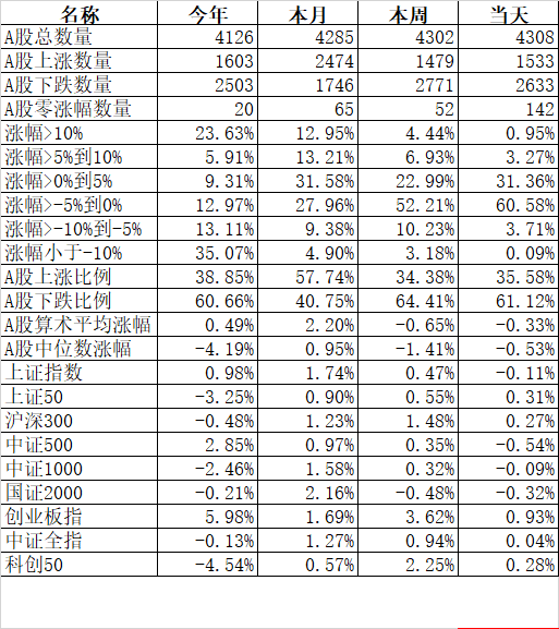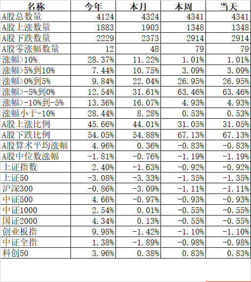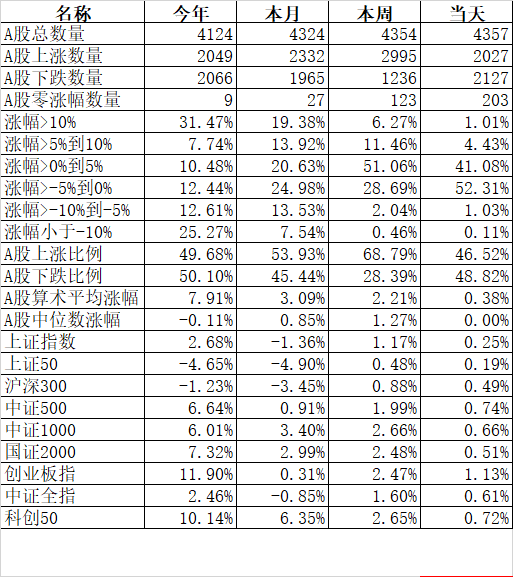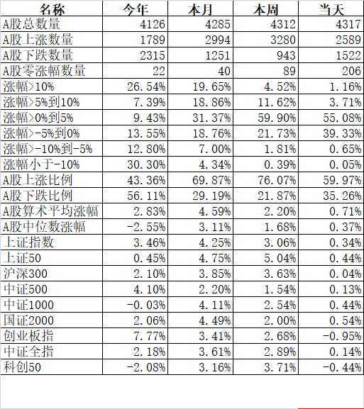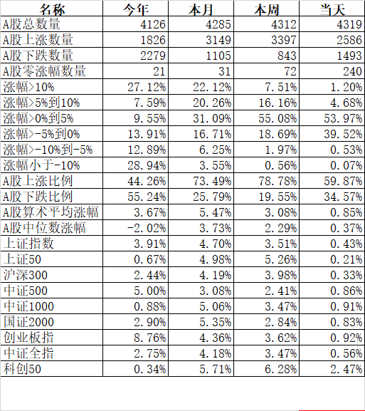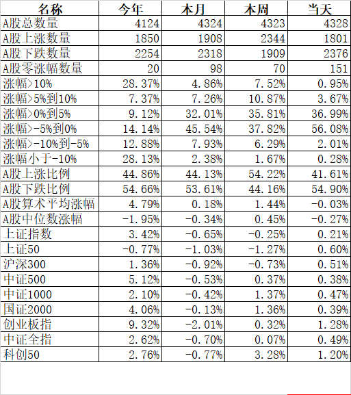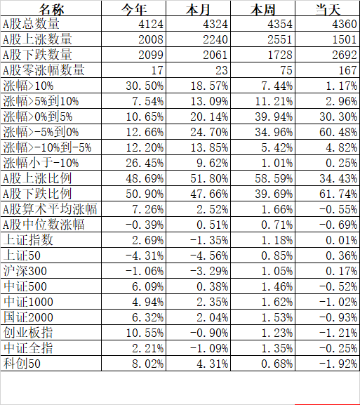 今天是个特殊的日子,4124只股票今年的中位数涨幅正好为0,也就是说今年年初你乱买股票,只要不乱动,中位数正好打平。
