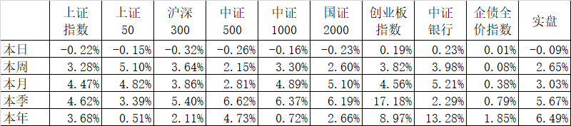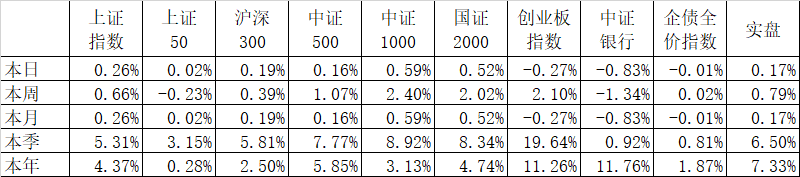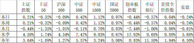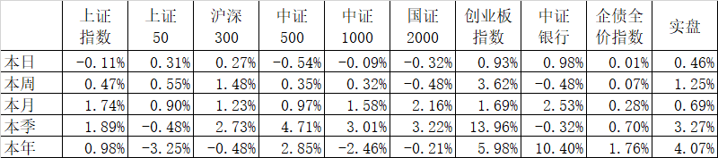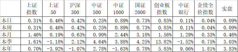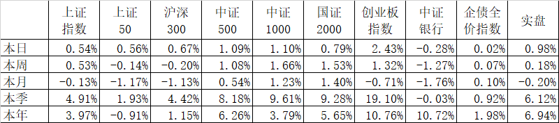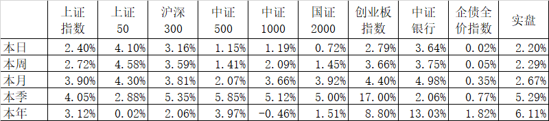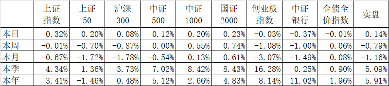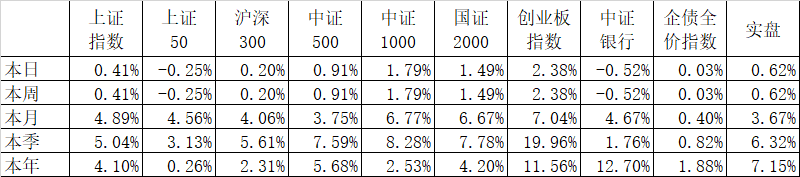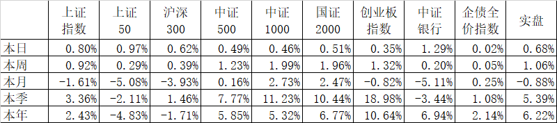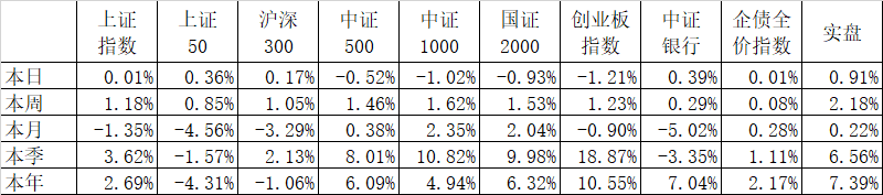 今天的行情被叶飞一个人撬动了。指数除中证1000略跌0.08%,国证2000下跌0.82%外,其他各大指数均上涨。个股三分之二下跌,中位数跌幅为0.99%。小票不管是不是叶飞概念股抢先跑了再说,资金再次抱团食品医药。