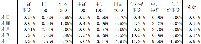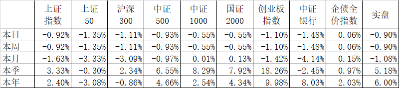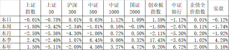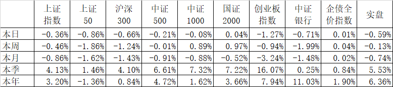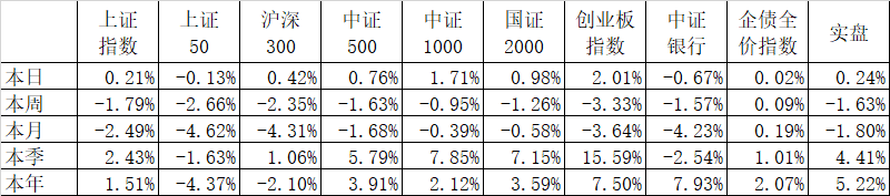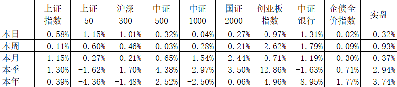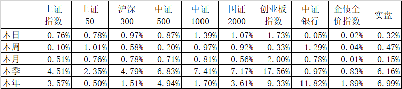 高层会议一开,今天煤炭、钢铁、有色、石油大跌;领涨的家电、保险、证券、酿酒、医疗等又是抱团股集中的板块。上涨最多的还是创业板,涨了0.93%,跌幅最大的中证500跌了0.54%,国证2000跌了0.32%,调整还是比较温和的。