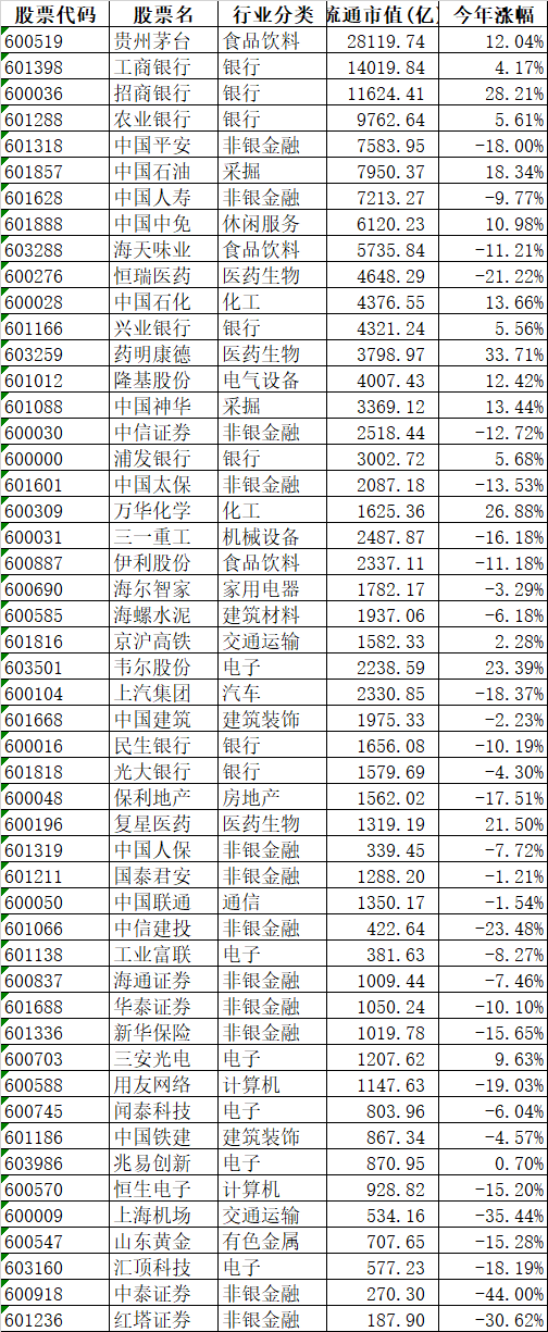 宽基指数今天涨幅最大的是跌了好久的上证50,涨了0.97,跌幅最大的是最近表现最好的科创50,跌了0.31%。但一批老白马盘中继续创出今年的新低,如美的、格力、牧原、万科、保利等。
