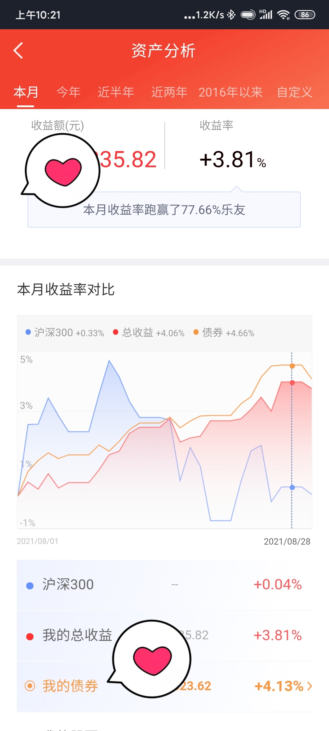 本周收盘净值1.09比上周上涨0.013,虽然妖债行情赚了一点,但本月主账户还是微亏的。