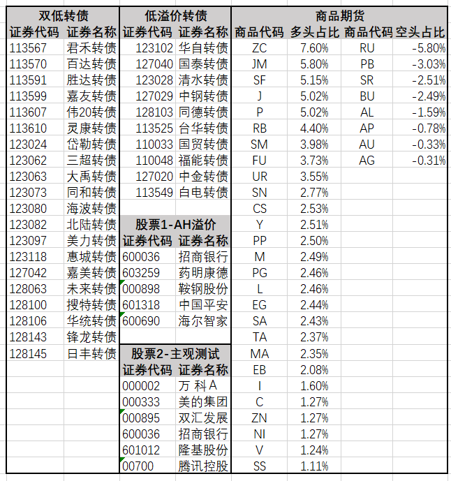 低风险仓位:占比40%。主要策略是双低,在抄作业的基础上有自己的一点变形。