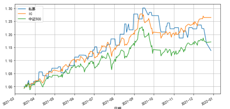 这里就不做什么分解了,直接与IC和中证500对比一下。