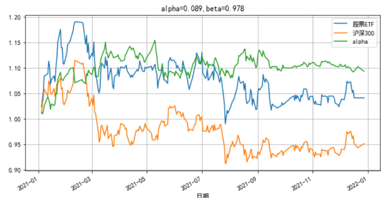 以沪深300为基准,将股票策略收益分解为alpha与beta两部分。