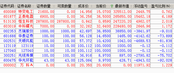 昨天冲动之下买了3/4仓位的万科,本以为侥幸蹭上凌晨的利好能有个可观的反弹,但事与愿违,高开很少,开盘后不强就卖了。买了特变电工、正泰电器,中科曙光,都是抄作业。前天抄作业的江丰电子昨天吓得割肉,今天也涨回来了。