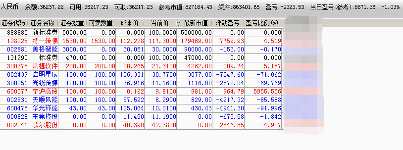 昨天收盘买了33%的启明星辰、18%的光线传媒、24%的华光环能,陕西黑猫没买。