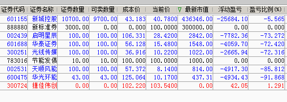 美格智能早盘瞬间大跌,本是想挂个反抽价27.25割肉,但当时的股价是26.95左右,填单的时候,系统默认的价格就是26.9几,只改了小数点后两位,前面的忽略了,挂成26.25卖出。提交后瞬间成交,心态又崩了。之后赌气式买入半仓新城控股,被暴击。10点半之后,美格智能还从今天最大跌幅的-8.7%反弹到最高的-1.7%,又是一次打击。