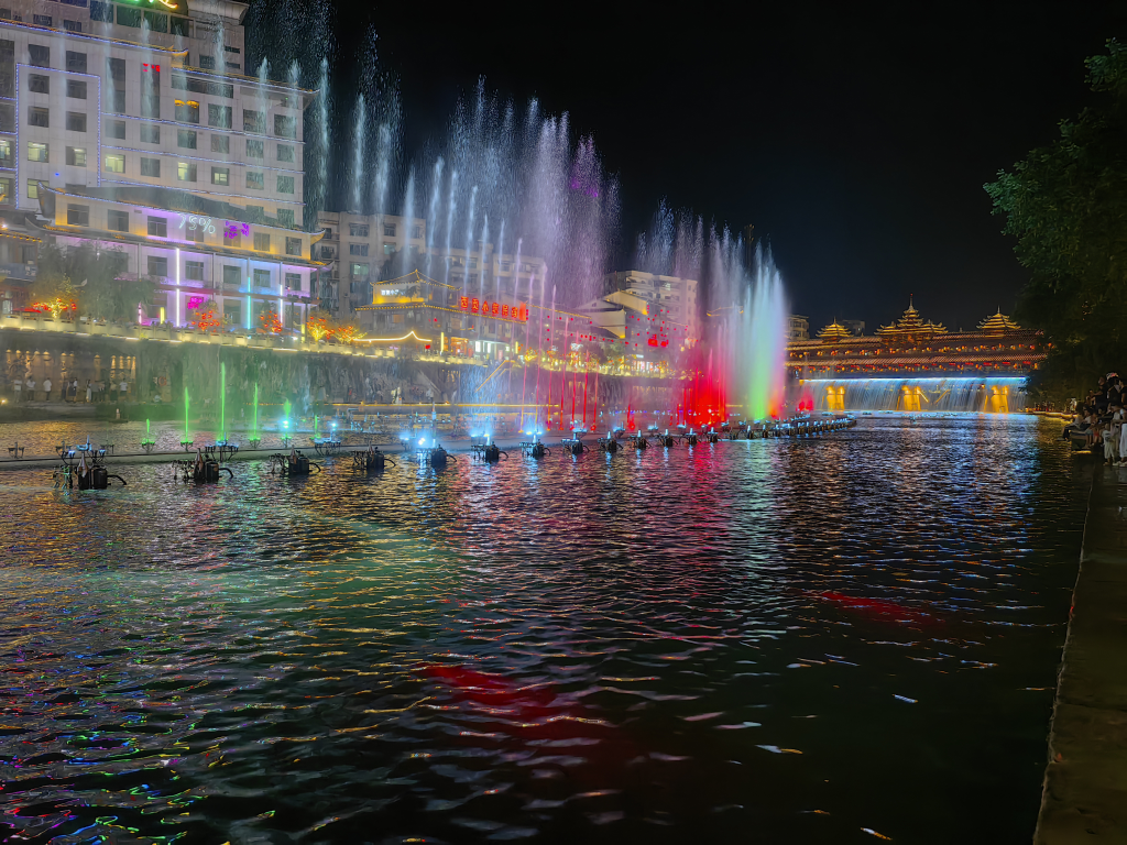宣恩的夜景真美,音乐喷泉很震撼。晚上我该坐了游船,体验挺好。