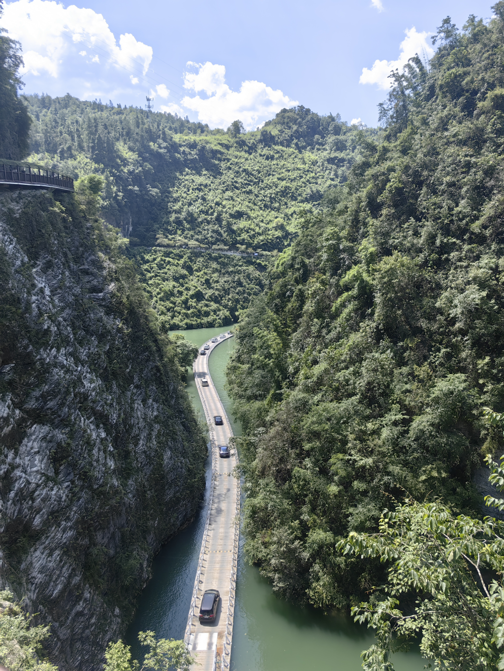 今天去了网红浮桥,然后司机还带我们在峡谷冲水,水花四溅,刺激。