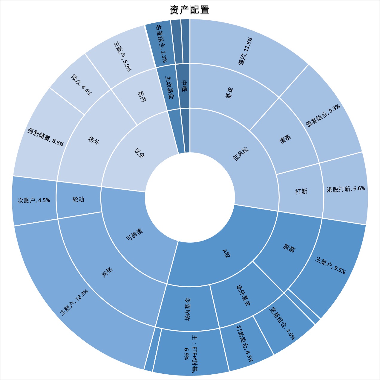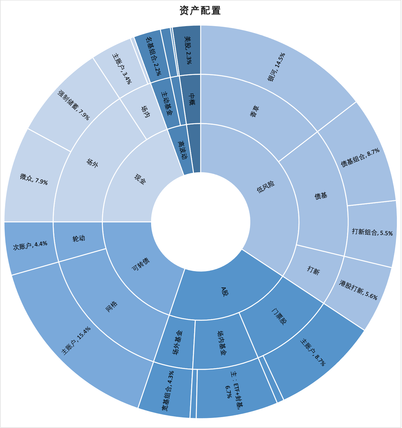 • ETF+封基折价轮动,占比6.7%:前5持仓:价值基金、中国互联、H股ETF、证券保险、红利ETF。封基按年化折价(到期折扣按1.5%计)轮动,还未入门,继续摸索。