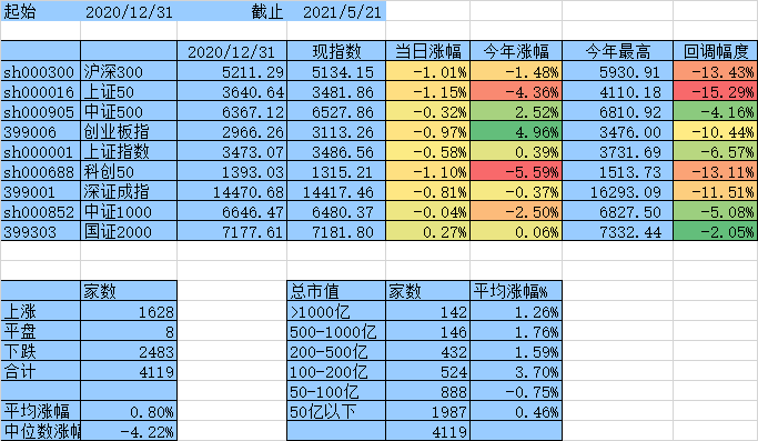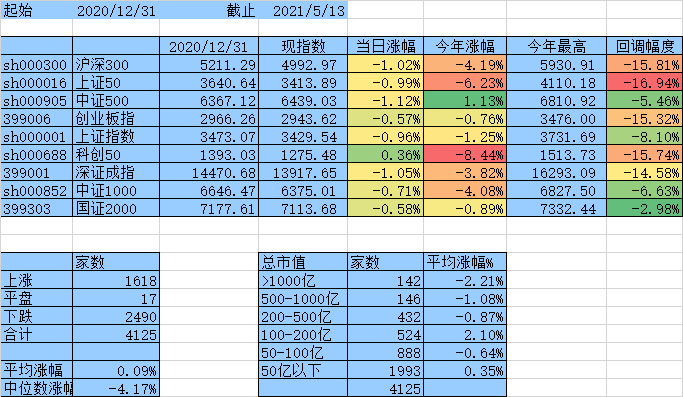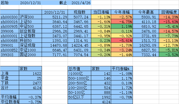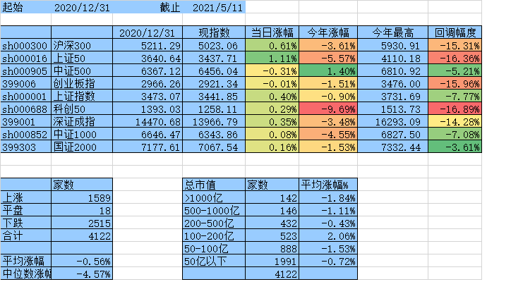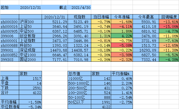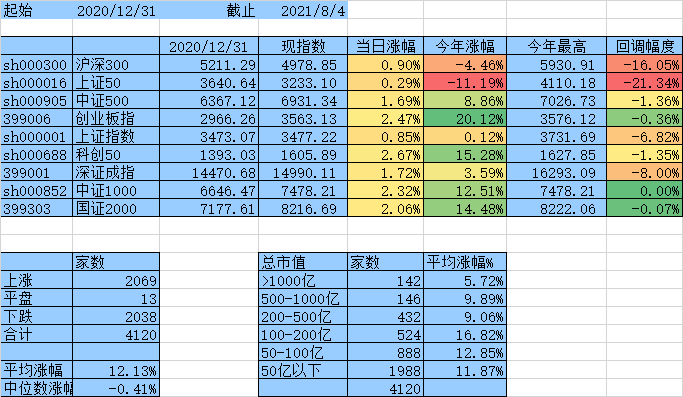 闲着无事统计一下这4天个股涨跌情况