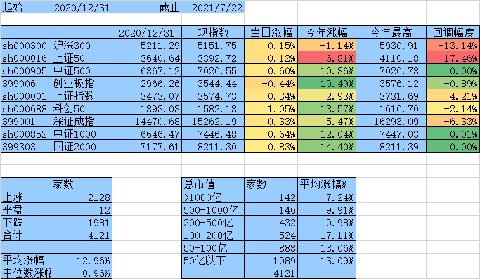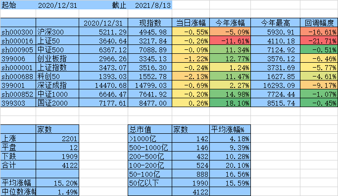楼主,我有个疑问想问下,假如一只票年初的市值是150亿,到昨天市值增加到了500亿,那么统计数据会把它放在哪个区间里?