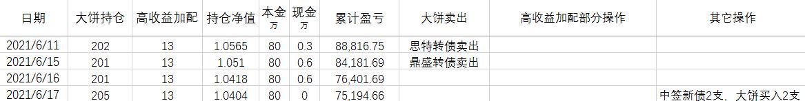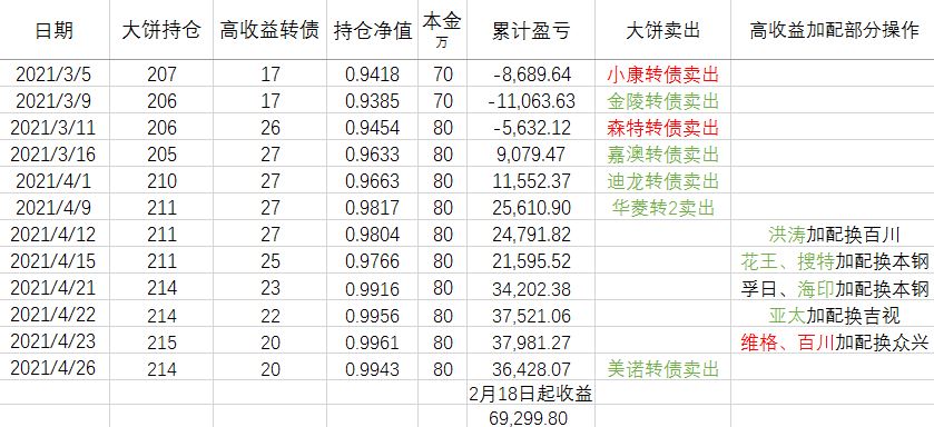 大业、新星转债达到目标价,卖出了加配部分。