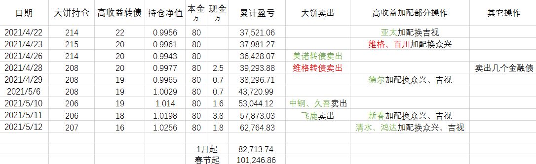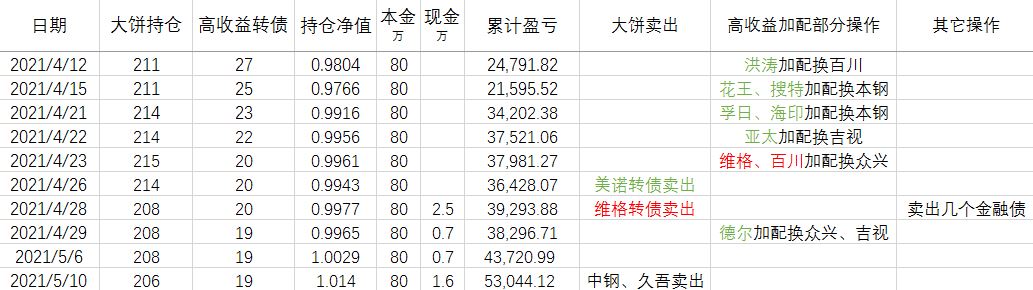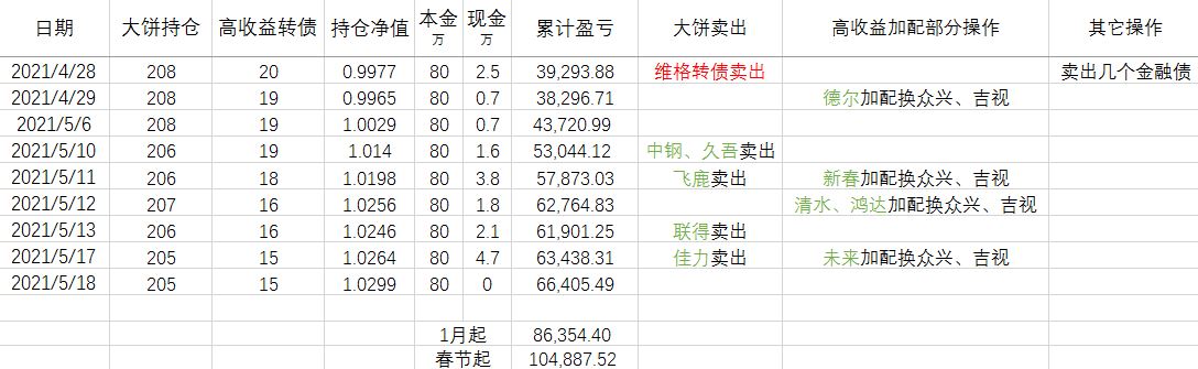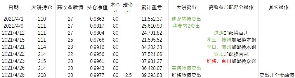 那么问题来了,这 20万资金放到哪里去呢?4月都下不去手的转债,现在这个时间点再买入显然不合适。