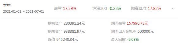 我自己的账户半股半债配置,同期略高于沪深300,已经很满意了。